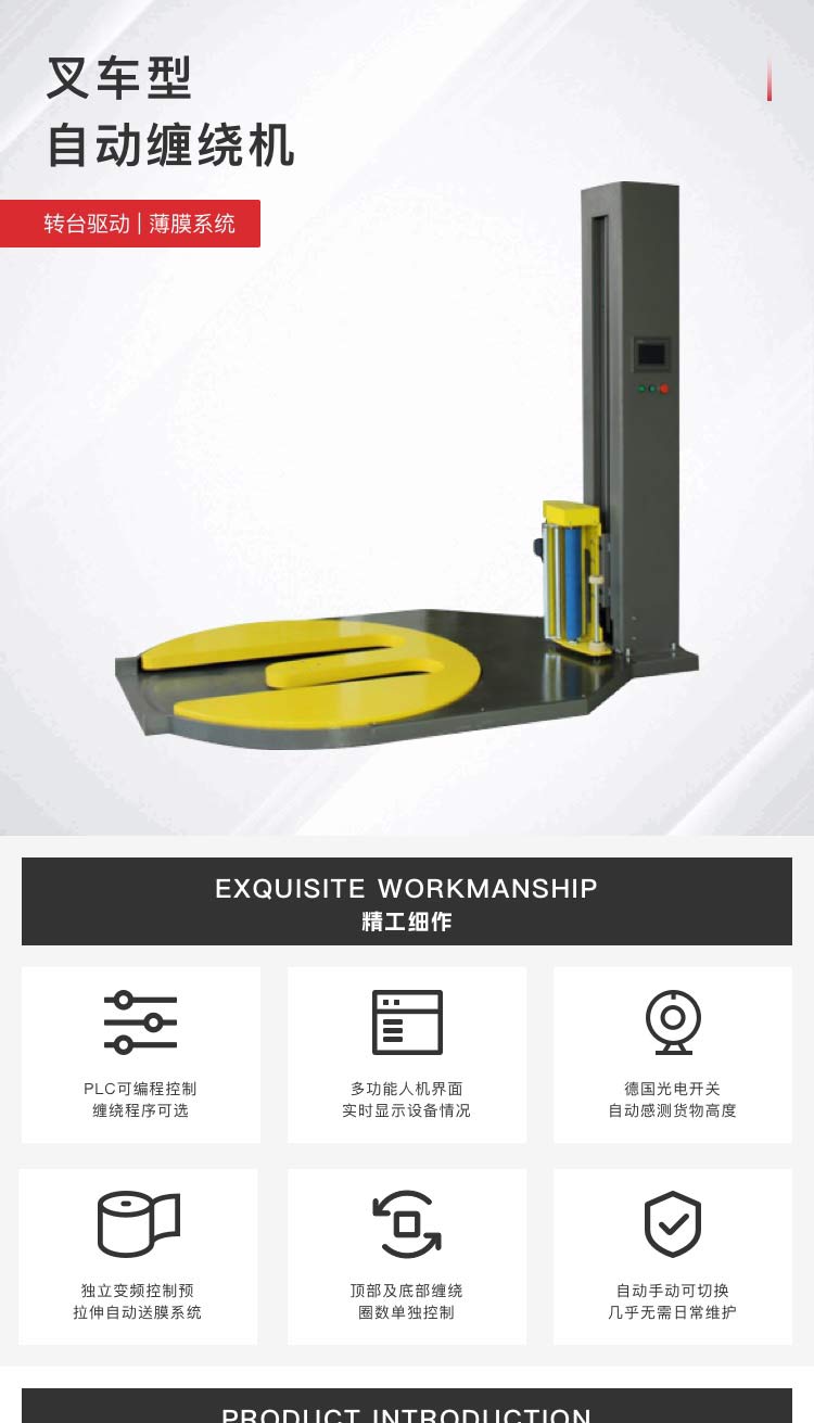 纏繞層數(shù)、運行速度、薄膜張緊度任意可調(diào),操作方便簡單。