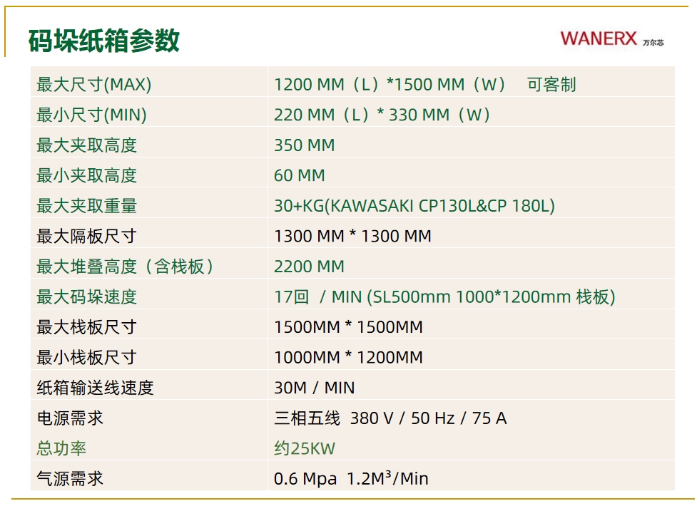 介紹:平板紙箱自動碼垛系統是萬爾芯的主打產品,其可根據客戶的場地需求、產能需求、及其他需求量身定制。 碼垛系統一般是由:機器人、疊包機、供棧機、鋪隔板機和四面拍齊機組成。其系統優勢在于疊包和碼垛綜合到16-18次/分鐘。 產品別稱:紙箱碼垛機器人、紙箱碼垛機器、紙箱碼垛設備、全自動紙箱碼垛機、機器人紙箱碼垛、自動流水線紙箱碼垛機